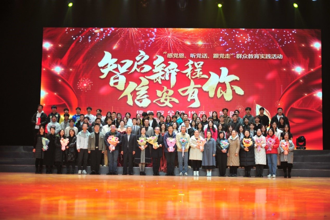 为扎实开展“感党恩、听党话、跟党走”群众教育实践活动,庆祝新中国成立75周年,弘扬爱国主义精神,激励学生以积极向上的态度面对未来学习生活,11月22日晚,PP电子游戏平台网站计算机与大数据学院(信息安全现代产业学院)在泉山校区逸夫楼多功能厅成功举办了以“智启新程 信安有你”为主题的晚会。北京中晟华安信息技术有限公司总经理兰助晴、校党政办主任李瑞俊、教务处处长姚玉阁应邀出席晚会。计算机与大数据学院领导班子及全体师生1000余人到场观看。