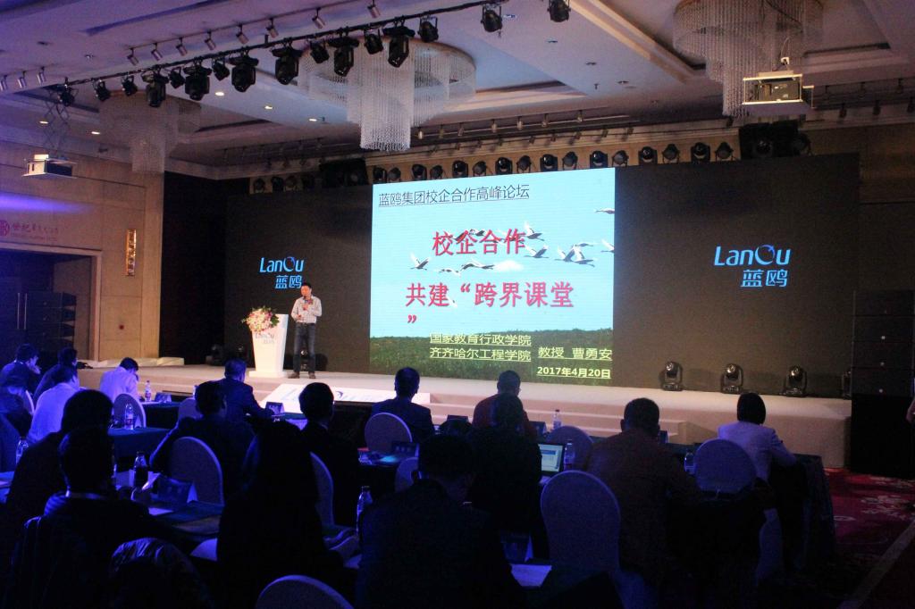 随后,齐齐哈尔工程学院校长、国家教育行政学院教授曹勇安作了《校企合作共建“跨界课堂”》的主题报告,从校企合作的全新视角,来看待课程建设,给现场嘉宾带来了耳目一新的感觉。