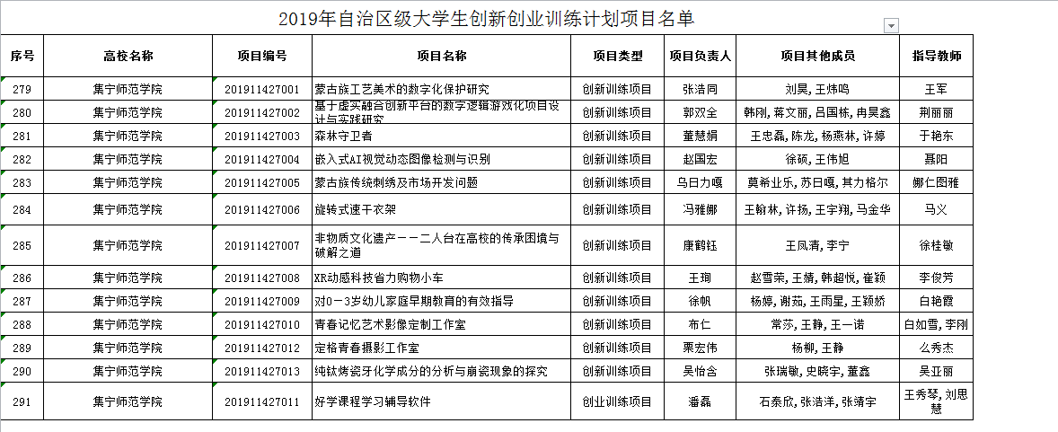 按照《关于报送2019年自治区级大学生创新创业训练计划立项项目的通知》(内教高函﹝2019﹞10号)要求,19所本科高校上报了2019年自治区级大学生创新创业训练计划项目。现将经审核通过的351项计划项目名单予以公布(其中,创新训练项目246项,创业训练项目63项,创业实践项目42项)。其中PP电子游戏平台网站共计立项15项。