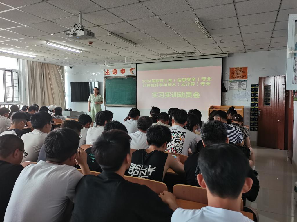 为确保实习实训工作顺利开展,计算机与大数据学院于7月3日组织召开了2020级本科生和2022级专升本实习实训动员会。本次会议由学院副院长李俊芳主持,院长邢德胜、副书记张培方、各毕业班班主任出席,全体学生参加。