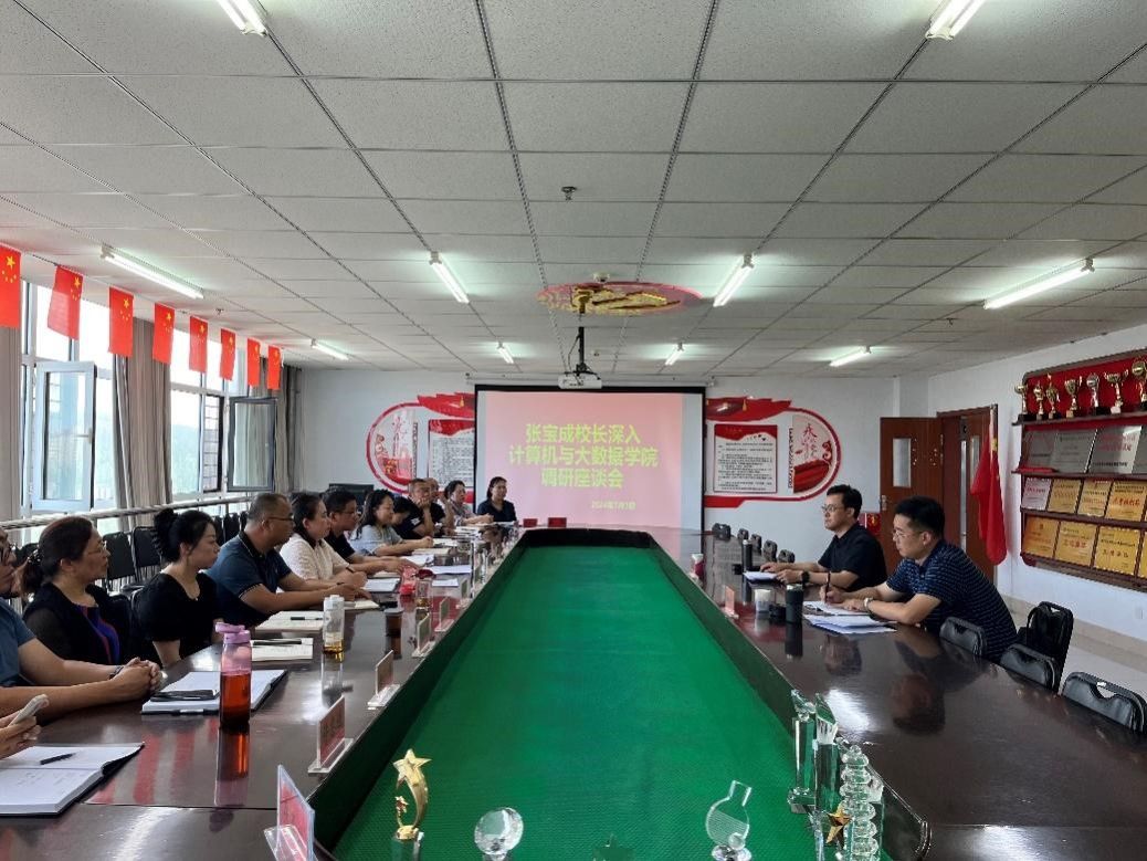 7月3日下午,校党委副书记、校长张宝成深入计算机与大数据学院调研并检查指导党纪学习教育工作,党政办公室副主任杨晓宇陪同。计算机与大数据学院班子成员、科级干部、各党支部书记、系(教研室)主任等参加座谈会。