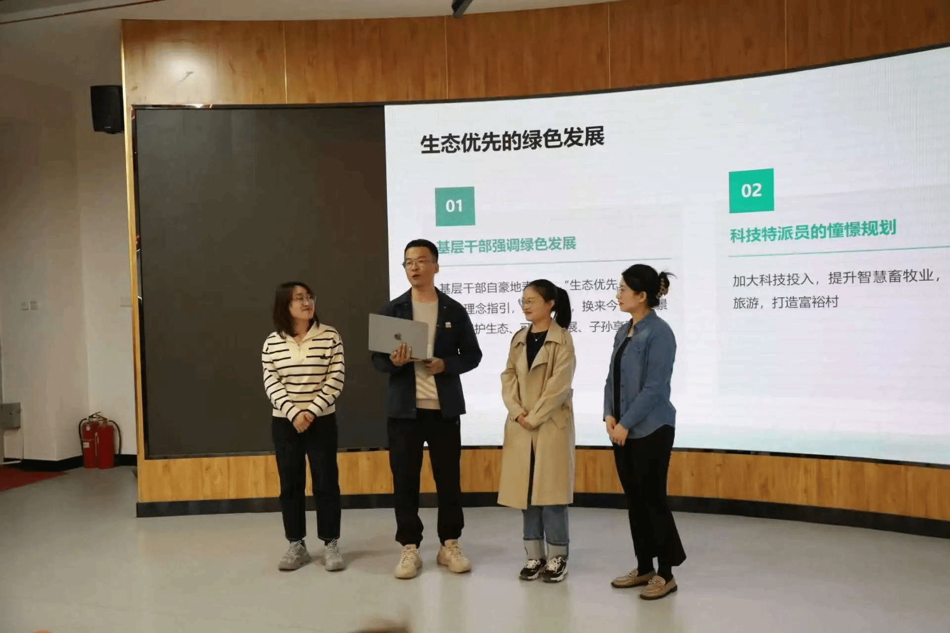 我院青年教师团队以“以理论之光,燃北疆之火”为主题,采用“宣讲+情景剧”的创新形式开展活动。在这场主题活动中,我院青年教师团队凭借扎实的专业素养和精心的准备,将宣讲与情景剧完美融合。他们生动再现了小村庄的蜕变历程,用饱满的情感、鲜活的演绎,让在场观众真切感受到思想引领的强大力量。当宣讲人点明内蒙古在思想指引下发生的巨变时,现场的气氛被推向高潮,我院青年教师团队的精彩表现赢得了现场评委与观众热烈的掌声,这掌声不仅是对他们舞台呈现的认可,更是对这一创新活动形式的高度赞扬 ,彰显了新时代青年教师传播先进思想、助力地方发展的使命担当。