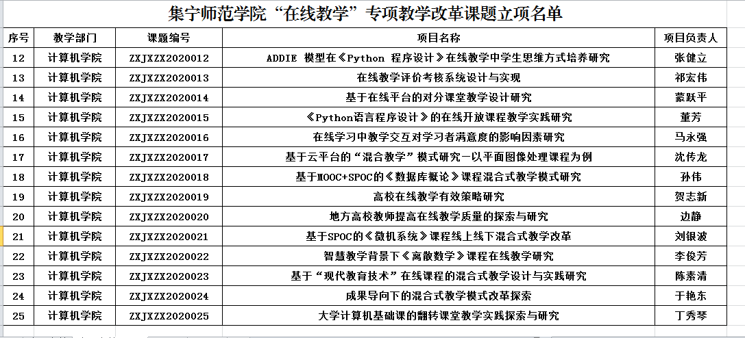 2020年PP电子游戏平台网站计算机学院“在线教学”专项教学改革课题立项名单