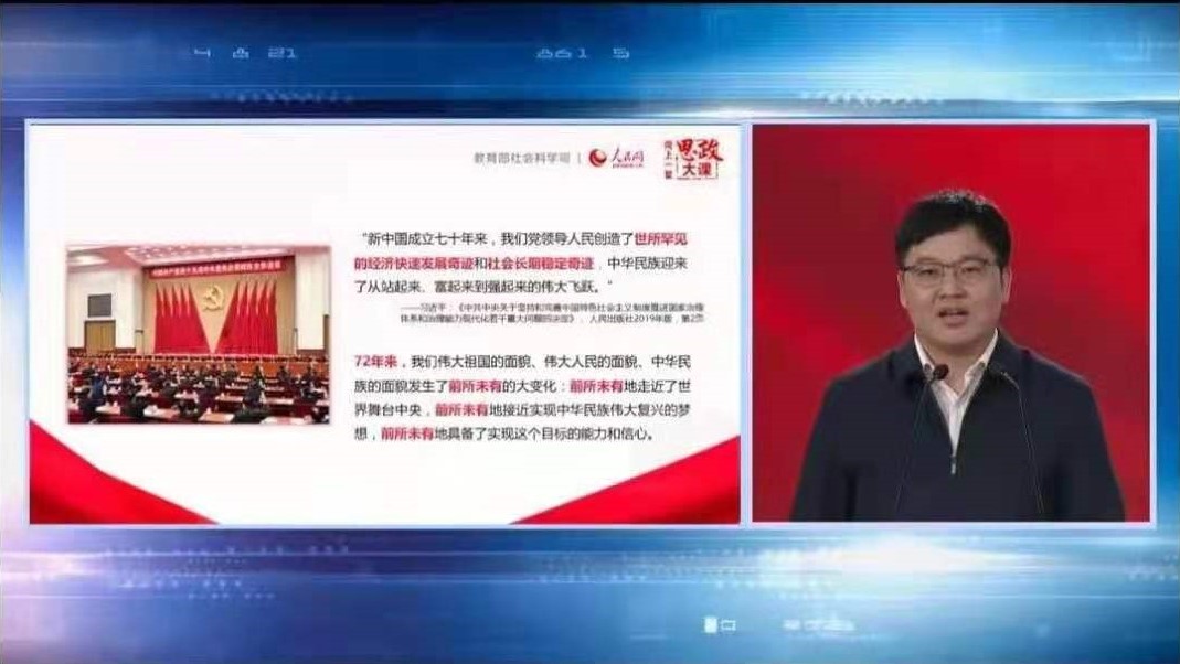 根据《教育部社科司关于组织全国大学生 “同上‘四史’思政大课”的通知》(教社科司函〔2021〕63 号)要求,PP电子游戏官网组织马克思主义学院全体思想政治理论课教师和全校本专科学生按时收看了2021 年 4 月 24 日的“同上党史思政大课”、5月9日的“同上新中国史思政大课”、5月15日的“同上改革开放史思政大课”、5月22日的“同上社会主义发展史思政大课”。