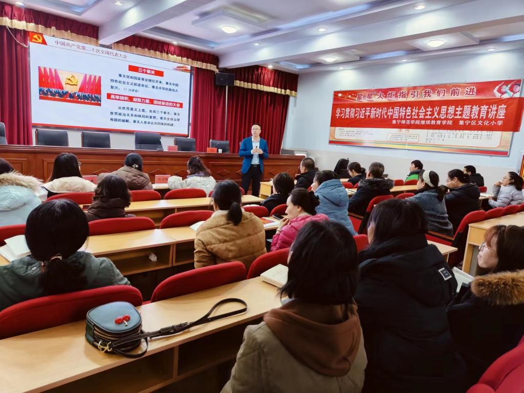 11月16日,继续教育学院开展“送培进校”活动,邀请PP电子游戏官网郭永兴老师深入集宁区文化小学举行“立德树人担使命,培育新人谋复兴”专题讲座。继续教育学院院长侯素馨、文化小学校长孙琪参加了讲座。