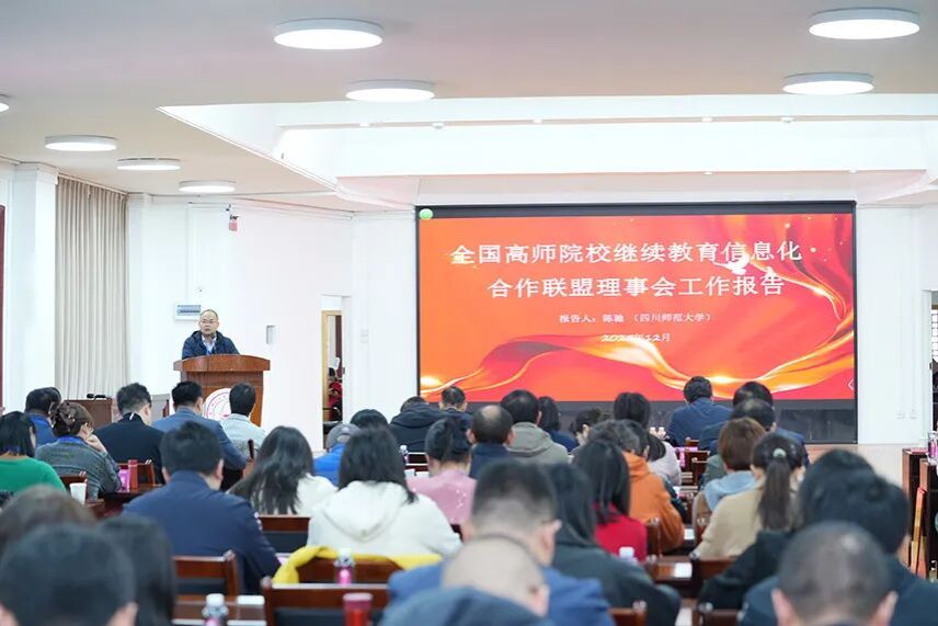 联盟轮值理事长单位、四川师范大学继续教育学院院长陈驰代表联盟理事会作工作报告。