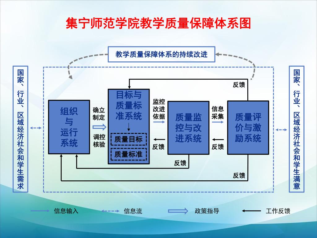 3.负责建立、健全学校内部本科教学质量保障体系和教学质量持续改进机制,制定各类教学质量评价标准,开展教学质量监控工作。