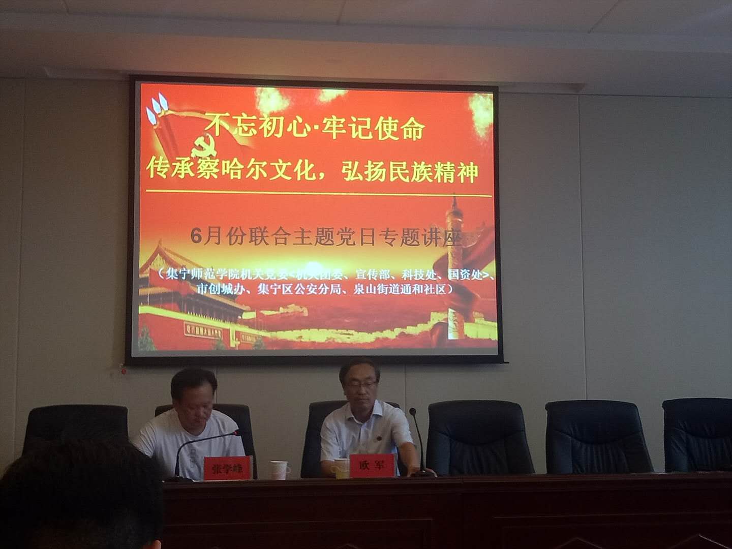 6月21日,PP电子游戏平台网站机关党委(机关团委、宣传部、科技处、国资处)与乌兰察布创城办、集宁区公安分局、泉山街道通和社区联合举办六月份主题党日活动。活动的主题是“不忘初心,牢记使命——传承察哈尔文化 弘扬民族精神”。PP电子游戏平台网站欧军教授作了专题讲座。