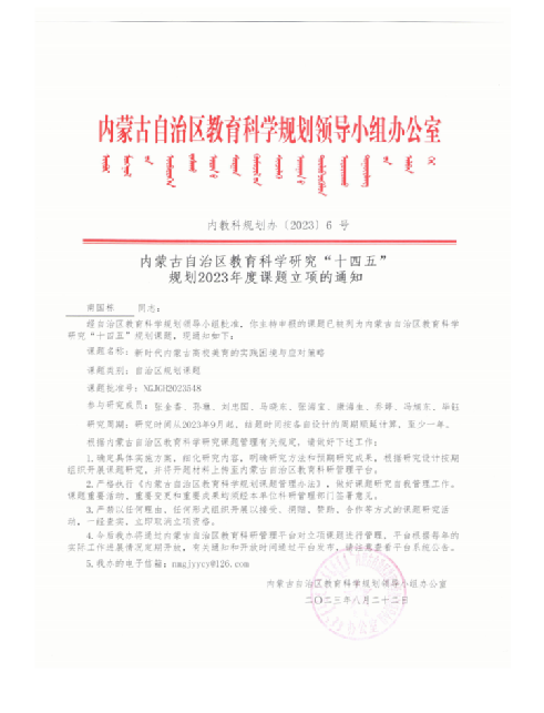 立足乌兰察布地域文化与美育需求,推动艺术创作、理论研究与地方文化建设、中小学美育、社会艺术服务相结合,促进科研成果转化为教学资源、文化产品与社会服务能力。