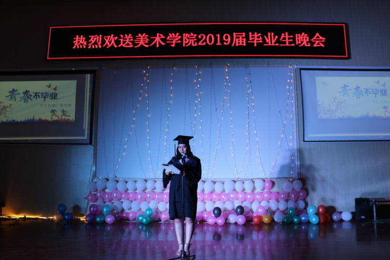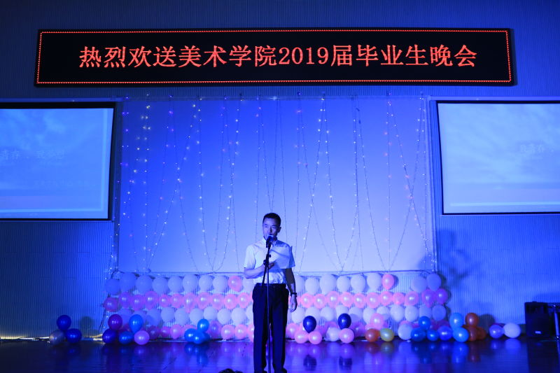 今朝梦起,不负韶华。6月24日晚,美术学院欢送2019届毕业生晚会在美术学院报告厅举行。团委书记李瑞俊老师、团委副书记马晓东老师、美术学院党总支书记焦俊亮老师、院长南国栋老师、副院长蔚淑英老师出席了本次活动。
