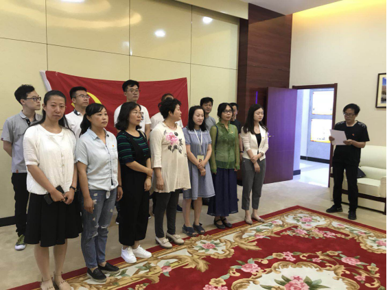 为了深入了解学校建校历史,弘扬办学精神,传承优秀文化,增强全体教师党员爱校情怀,进一步激发党员的自豪感、荣誉感和责任感,7月10日下午3时,美术学院开展以“不忘初心,牢记使命”,“追忆历史,传承精神,立足本职,砥砺前行”为内容校史参观主题党日活动,美术系学院全体教师党员、部分教师参加了活动。活动在宏亮的校歌声中拉开帷幕,学院总支书记焦俊亮同志作了