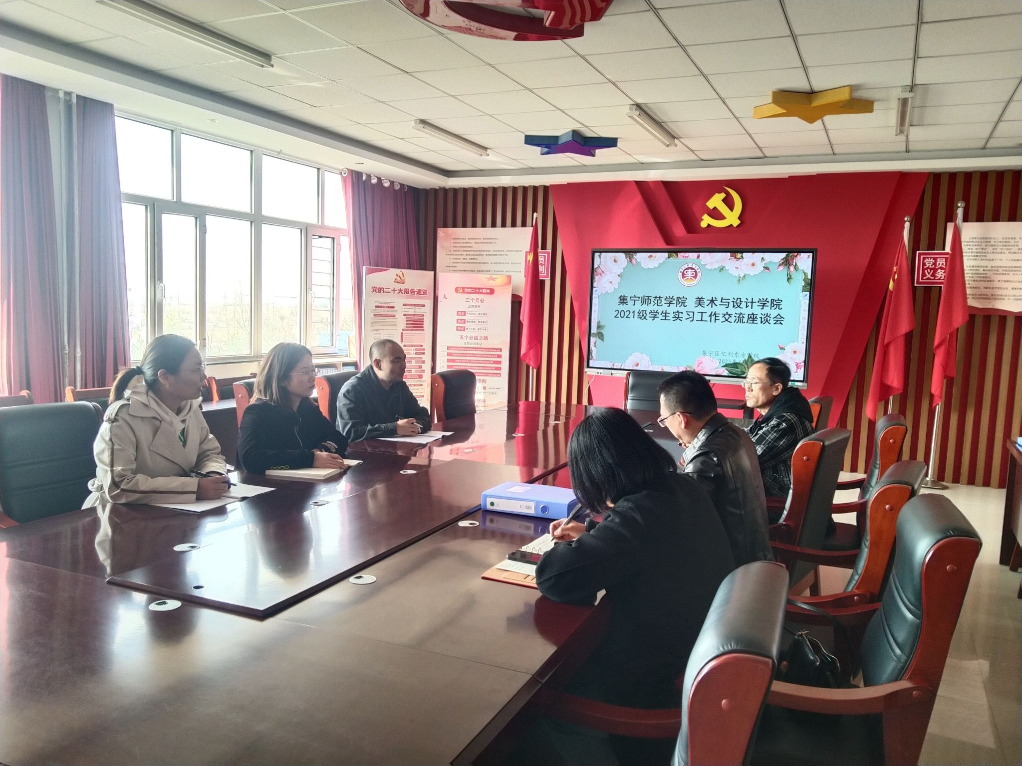 近日,为提高师范生教育实践的教学质量,确保教育实习工作扎实有效地开展,美术与设计学院当中书记南国栋、副院长马晓东、团总支书记闫淑珍一行三人前往集宁区亿利东方学校开展实习工作交流座谈会,调研PP电子游戏官网师范生教育实习进展情况。