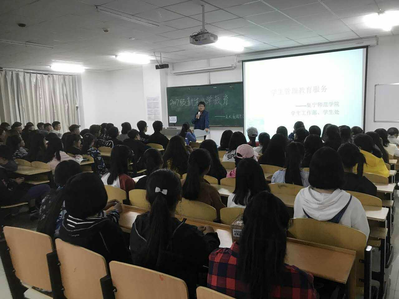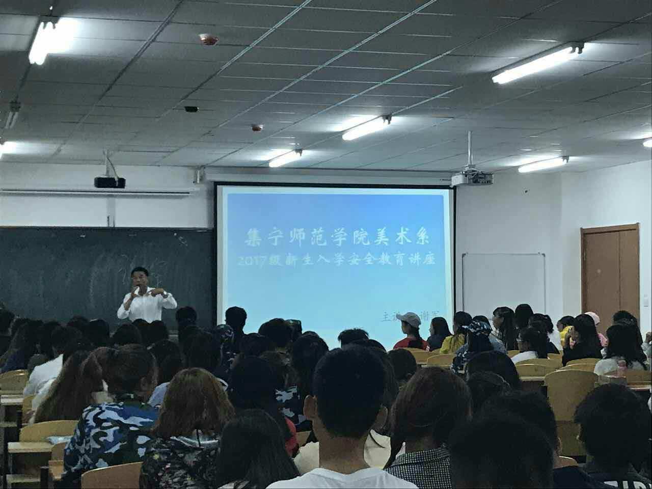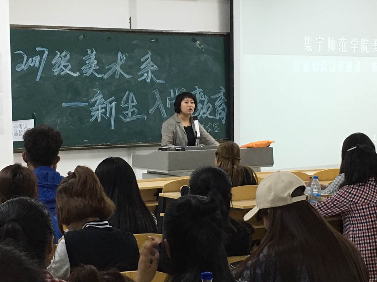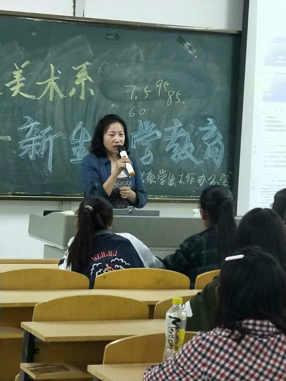 入学教育由美术系副书记薛银河、教学副主任蔚淑英、保卫处处长谢军、副教授王瑞红老师主讲。