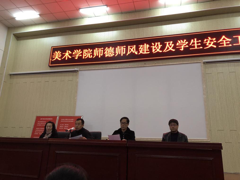 会上,焦俊亮书记宣读了《美术学院关于进一步加强师德师风建设的实施意见》,《争当“四有”好老师,做学生成才的引路人——致全体教师倡议书》和《美术学院关于2019年学生安全教育管理工作的指导意见》,让每一位教师认识到师德师风及学生安全教育工作的重要性,增强教师的责任感和使命感。