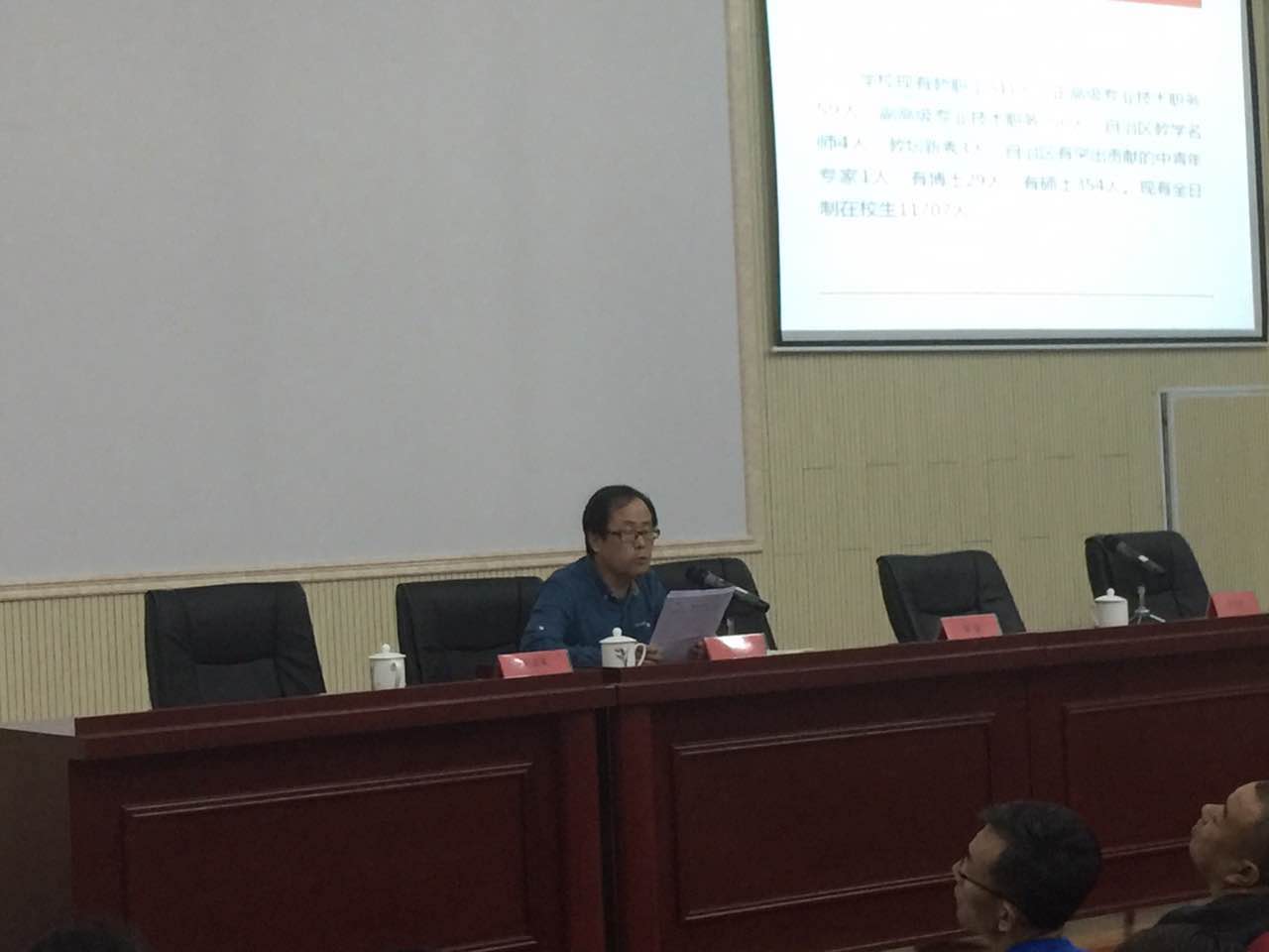 美术系主任南国栋对我系近几年的发展、专业、师资及基础设施等作了具体汇报,并就评估期间对全系师生提出六点要求。