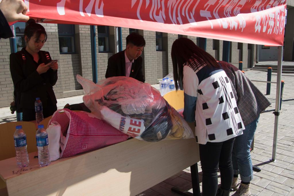 活动过程中,工作人员面带微笑接过送来的衣服、裤子、鞋包并进行分类、拣选和打包,捐赠衣物的同学们也都热情积极,除了拿着自己的衣服,也一直在号召身边的朋友一起捐赠。