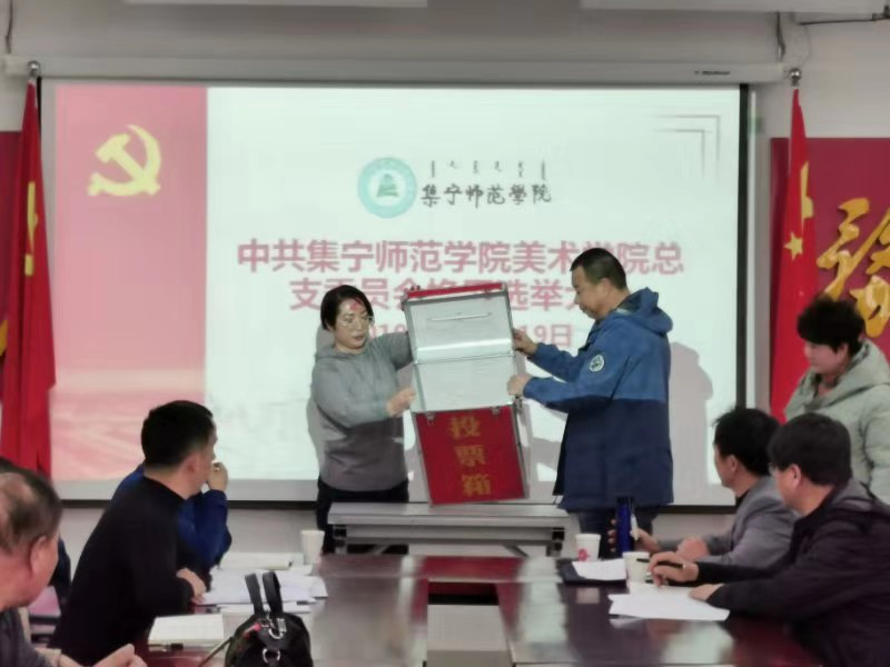 换届选举党员大会由美术学院党总支书记焦俊亮同志主持,学校组织部杨福贞同志全程指导换届选举工作,美术学院全体党员参加选举大会。