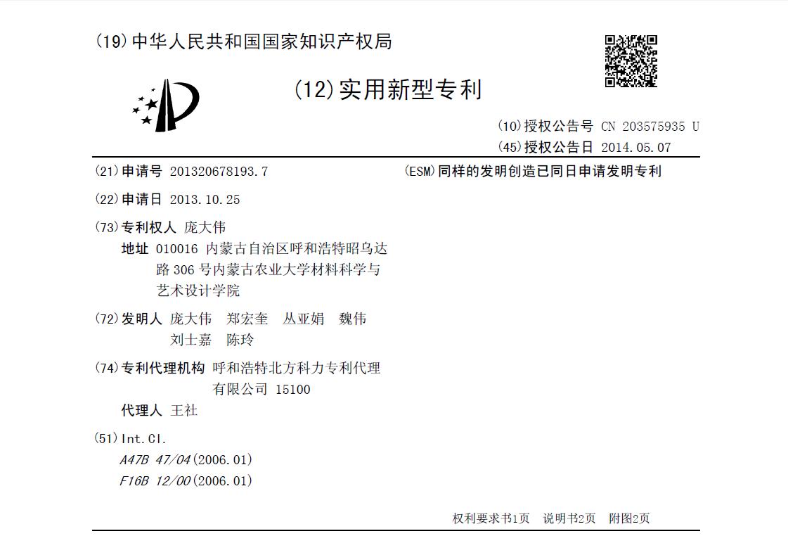 同年十月,参与设计的作品成功申请到国家实用新型专利。