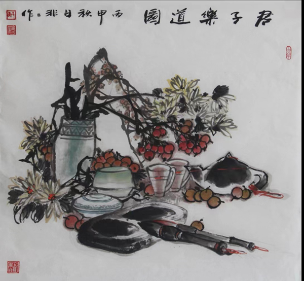 16、国画《君子乐道图》、入选内蒙古自治区成立70周年首届全区高校青年美术作品展览并出画册、2017年3月