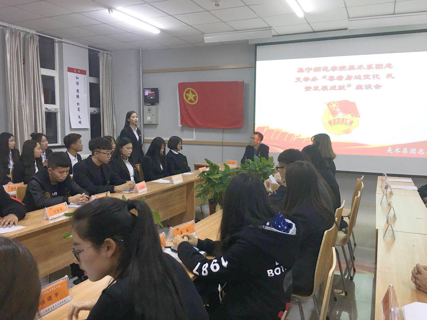 为全面贯彻党的十八大和十八届三中、四中、五中、六中全会精神,深入贯彻习近平总书记系列重要讲话精神和治国理政新理念新思想新战略,为展现党的十八大以来内蒙古自治区在经济社会发展中取得的新成就、家乡发生的新变化。美术学院团总支于2017年11月1日举办“喜看身边变化 礼赞发展成就”座谈会。