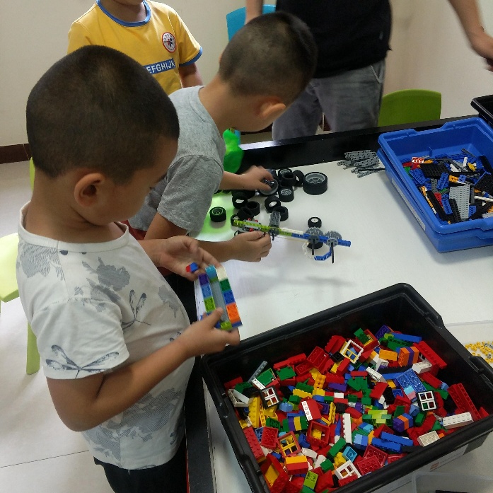 小朋友们在团队成员的指导下,利用乐高积木,搭建童真童趣的五彩世界。活动中,启发性美术教育得到了实践,为今后美术教育积累了经验。