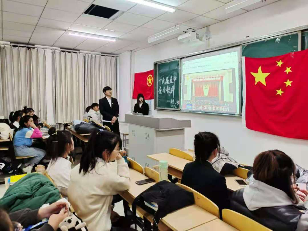 美学一、二班的同学们集体观看学习中国共产党第十九届中央委员会第五次全体会议公报视屏。
