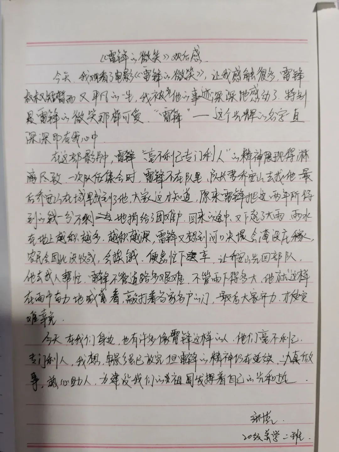 《雷锋的微笑》让我们看到了一个可爱的英雄,《雷锋的微笑》让我们看到了一个可爱的战士,《雷锋的微笑》绽放在美丽的三月。雷锋同志 那种先人后己、助人为乐的好品质给我留下了深刻的印象。