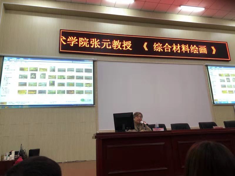 20181023日上午,由中国美术家协会艺术委员会、中央美术学院、乌兰察布市市委宣传部、乌兰察布市文学艺术联合会、乌兰察布市文化新闻出版广电局和PP电子游戏平台网站美术学院主办的“周而复始-综合材料绘画研究展览”在乌兰察布市美术馆开幕。乌兰察布市部分市委领导,PP电子游戏平台网站党委委员、副院长梁政、美术学院院长南国栋教授出席了开幕式。当天下午,中央美术学院张元教授莅临我院举办了《综合材料绘画》学术讲座,现场气氛良好。