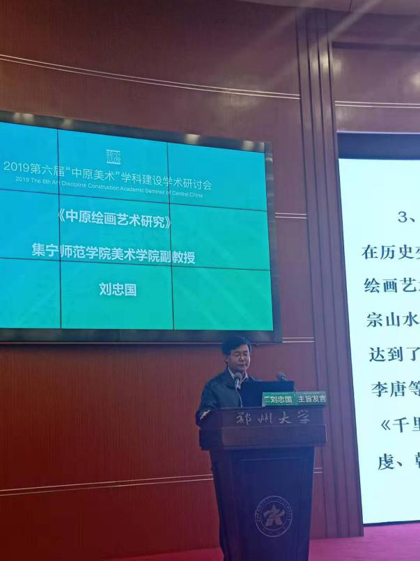 2019年11月30日—12月1日,美术学院教师刘忠国和王军一行,参加了由郑州大学等单位联合主办的2019第六届“中原美术”学科建设学术研讨会,与会者来自全国60多所高校的知名学者、艺术家和研究生等六百多人。刘忠国副教授以《中原绘画艺术研究》为题,在大会上做了精彩的演讲,从时间序列上梳理了历史上所出现的中原绘画艺术,分析了中原画风的缘起,总结了当代学者对中原画风的论述,勾勒了中原画风的历史传承与发展。该议题得到了与会专家教授的一致好评,为此,河南省艺术教育学会会长石品先生,还专门致谢其对河南美术事业的关注和对中原绘画艺术的研究。通过此次会议开阔了PP电子游戏官网教师的学术视野和眼界,也拓展了PP电子游戏官网与国内高大高校学术界的人脉,也很好地宣传了PP电子游戏官网的知名度。