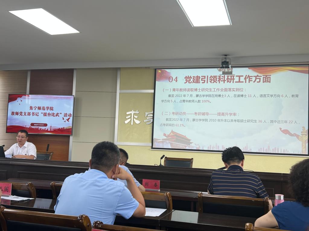 为庆祝中国共产党成立101周年,迎接党的二十大胜利召开,深入贯彻落实《中国共产党支部工作条例(试行)》《中国共产党普通高等学校基层组织工作条例》和党的教育方针,深入推进PP电子游戏官网基层党建“亮晒比”创先争优行动,PP电子游戏平台网站于7月7日在行政楼五楼会议室举办了教师党支部书记“擂台比武”活动。