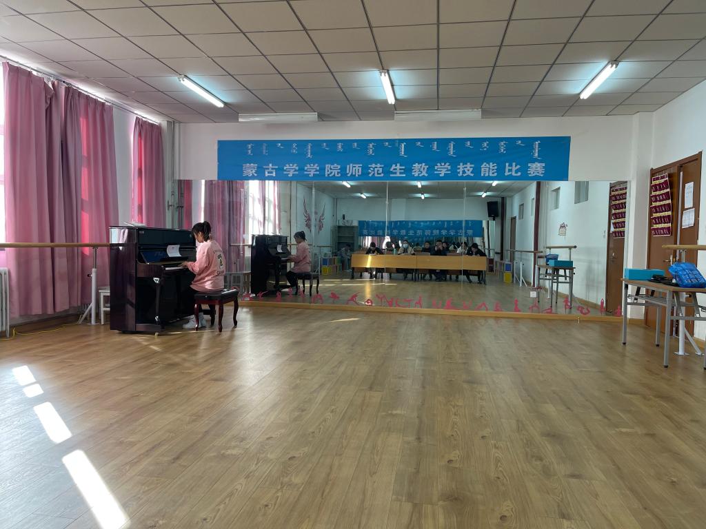 本次比赛评委由图雅、英雄、牡丹、朝鲁门老师担任,共有14名班级赛推荐上来的学生参加了院赛。