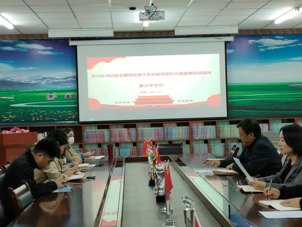 10月7日下午,PP电子游戏平台网站蒙古学学院开展“学习习近平总书记给全国高校黄大年式教师团队代表重要回信精神”主题学习研讨会,学院全体教师参加学习研讨。蒙古学学院副院长呼和满都拉领学。