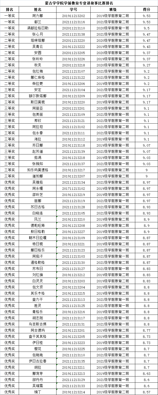 为有效提高学生的专业素养和教学技能,加强国通语表达能力,全面提高同学们对国通语的感受能力和掌控能力,在疫情防控期间营造良好的学习氛围,蒙古学学院于5月14日在线上开展幼儿故事讲述比赛暨主题党日活动。比赛由学院教学科研科组织,评委由学前教育教研室主任图雅副教授、查干老师、特日格乐老师担任。四个年级共有62名学前教育专业学生参加比赛。比赛场地选用了蒙古学学院新建实习实训室。