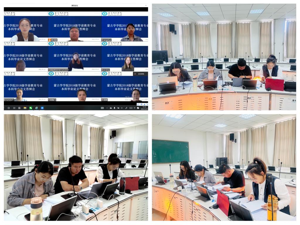近期,蒙古学学院2022届本科毕业论文(设计)答辩工作陆续开展,蒙古语言文学专业和学前教育专业按照工作计划顺利推进论文答辩各项工作。结合疫情防控要求和学校实际情况,学院2022届毕业论文(设计)答辩采取线上方式进行。113名预毕业生分为5个答辩小组进行,每个答辩小组由3位教师、1名答辩秘书组成。线上答辩的学术水平要求、程序步骤、管理标准等与线下答辩一致。