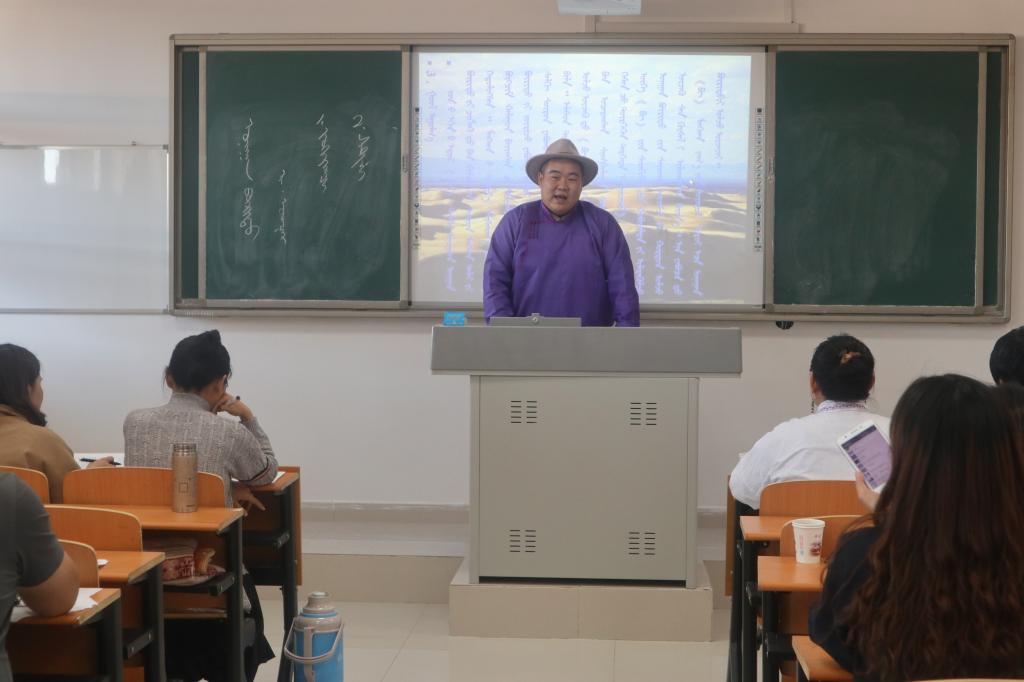 为提高师范生教学技能,展现学生风采,11月3日下午,蒙文系第二届师范生教学技能大赛在蒙文系35402教室举行。蒙文系副主任孟美英老师、吉日格拉老师、贺喜格都楞副教授、学前教育教研室主任娜仁图雅副教授、文学教研室主任色音套格特博士为此次比赛担任评委。