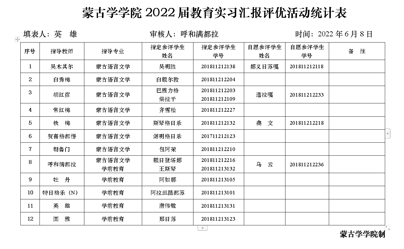 2018级蒙古语言文学专业和学前教育专业师范生,每位指导教师指定推荐参赛选手不少于1人,自愿参赛选手人数不限,具体名单见附件,参赛顺序按照前期抽签顺序。