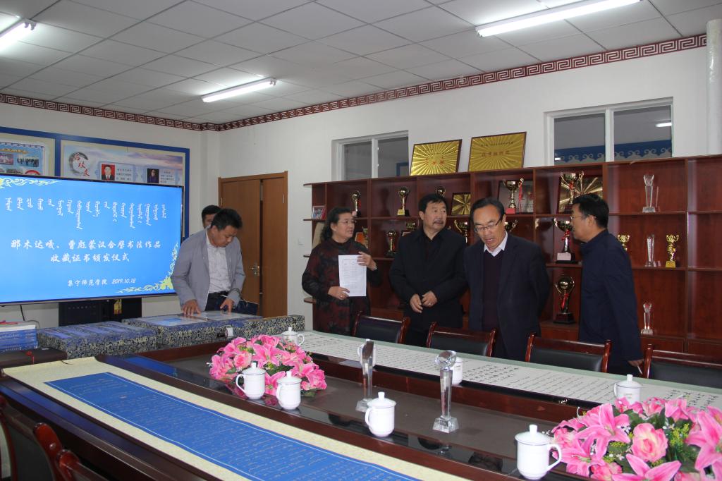 10月12日PP电子游戏平台网站收藏书法家曹彪、那木达嘎手抄《成吉思汗箴言》蒙汉合璧长卷仪式在蒙古学学院举行。校党委委员、副校长许卫,党委委员、宣传部长张富,党委委员、科技处处长李平,机关党委书记欧军,科技处副处长杨瑞芳,蒙古学学院领导班子及部分教师参加仪式。仪式由蒙古学学院院长南斯力玛主持,许卫代表学校讲话。