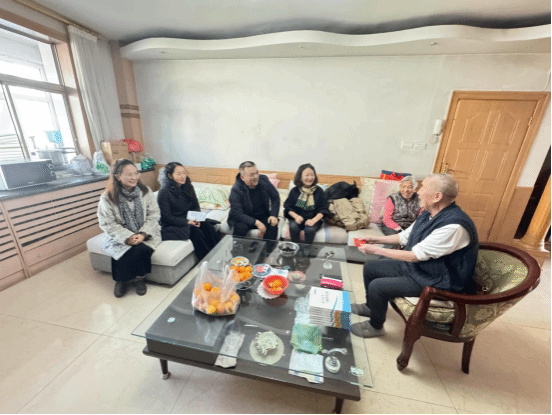 慰问人员热情与阿老师进行攀谈,共同回忆许多往事,介绍了学校和学院现在的发展情况。详细询问了解了阿老师老两口的身体和生活情况,送去了学校和学院的祝福。阿老师感谢学校和学院对于已退休多年老同志的的关心关怀,将自己多年积累沉淀下来的教学成果书赠与现场的老师。