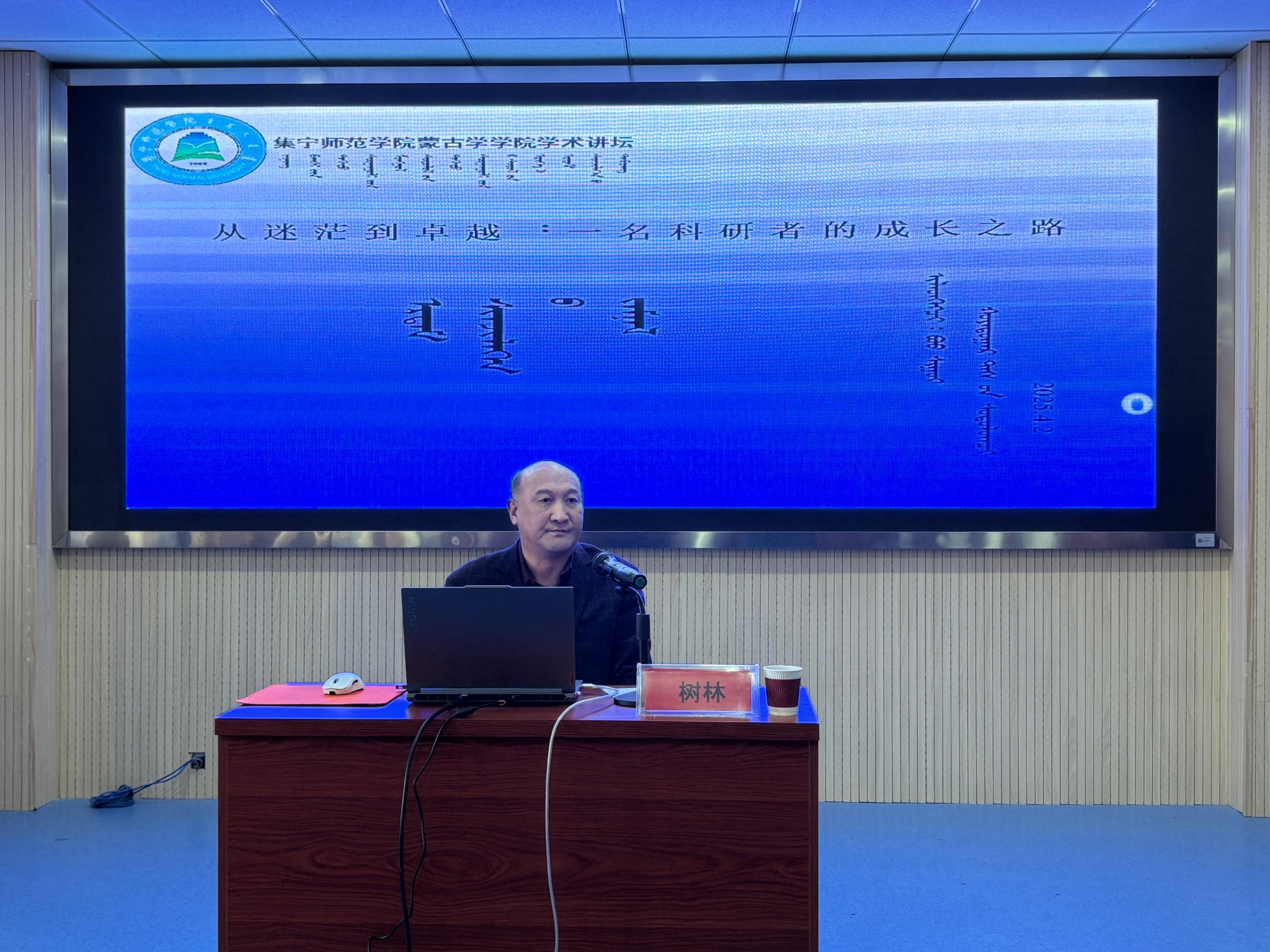 下午,树林研究员在白海校区现代服务学院报告厅作了题为《从迷茫到卓越:一名科研者的成长之路》的学术讲座。他以自身学术生涯为脉络,从初入研究领域的困惑与探索,到深耕蒙古学领域取得突破性成果的经历,生动诠释了学术工作者如何在坚守与创新中实现自我突破。他结合案例,强调“学术研究需扎根文化土壤,更需以问题意识为导向”,并鼓励青年学者“在学科交叉中寻找新视角,在持之以恒中积淀厚度”。现场师生全程专注聆听,一名学生表示:“树林老师的经历让我明白,学术道路上的迷茫是成长的必经阶段,但唯有保持热爱与韧性,才能走得更远。”讲座由蒙古语言文学系主任满都拉副教授主持,蒙古学学院部分师生现场聆听。