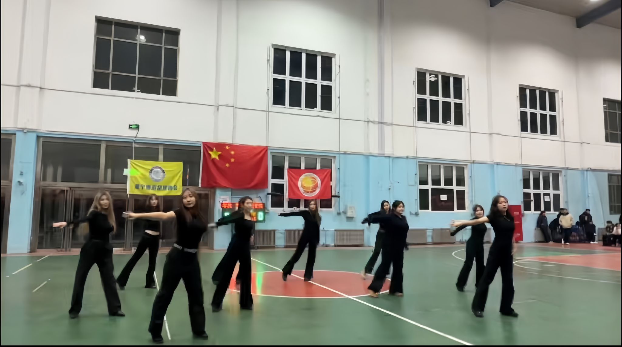 蒙古学学院女子拉拉队率先登场,活力满满的开场舞瞬间点燃全场气氛,为即将出战的男篮队员们注入满满能量。