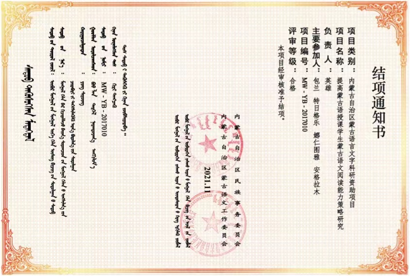 项目一:蒙古语授课学生母语意识和语言认知能力提升研究