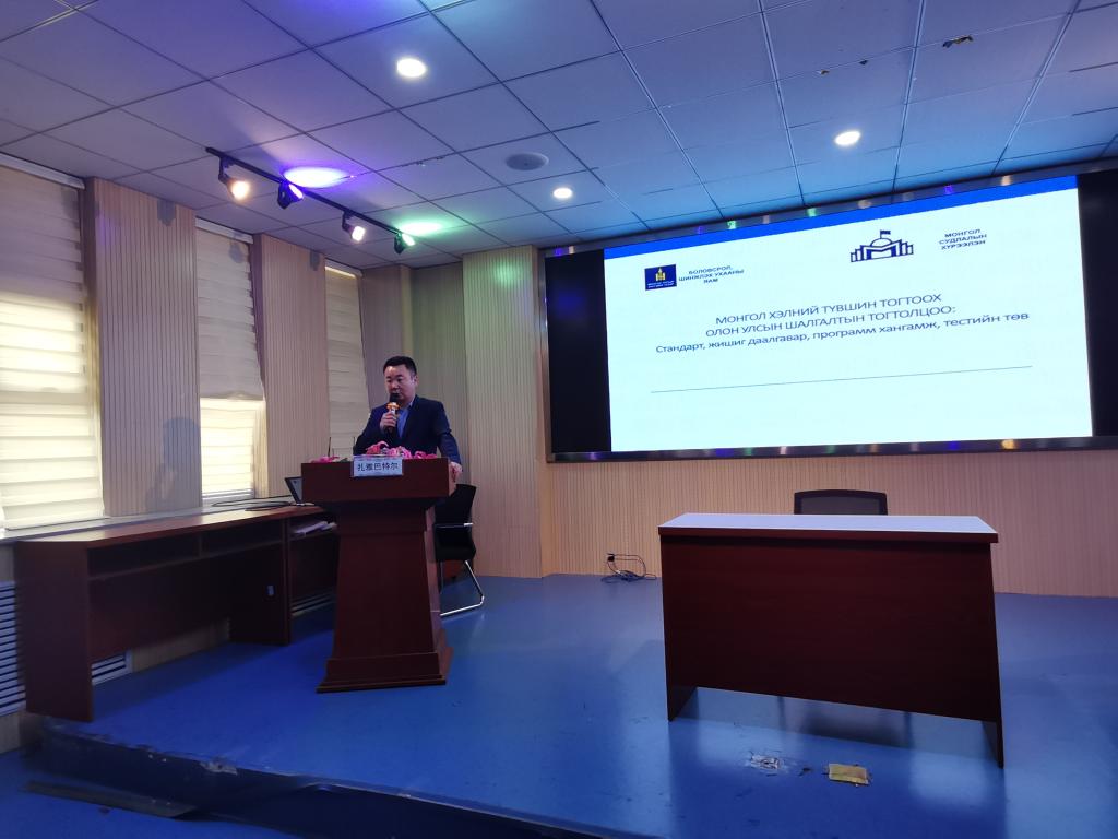 扎雅巴特尔教授以“国际蒙古语水平测试体系建构及相关问题”为题,从国际蒙古语水平测试体系的建立、国际蒙古语水平测试体系的架构及目前蒙古语研究中存在的问题及举措等三个方面介绍了国际蒙古语水平测试建立的背景、意义及必要性,并与现场师生进行了深入的交流与互动,现场气氛热烈而活跃。蒙古学学院全体教师及近100名同学聆听。
