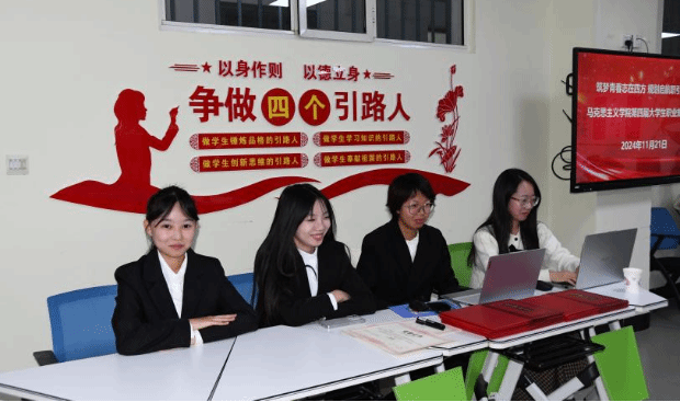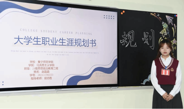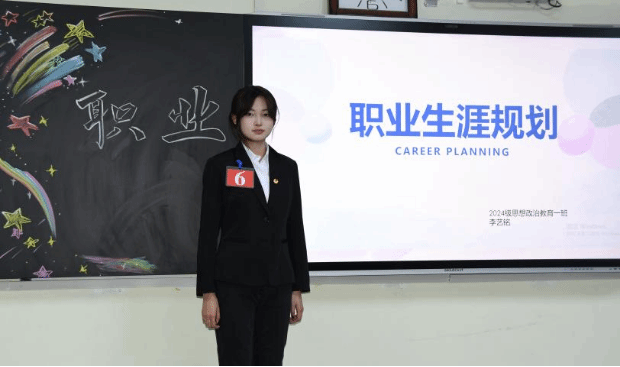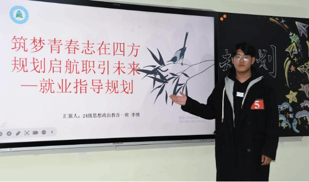 为加强高校生涯教育和就业指导,充分发挥“以赛促学、以赛促教、以赛促就业”的育人功能,增强大学生生涯规划意识和求职实践能力,11月21日晚上,马克思主义学院于主教419教室举办“筑梦青春志在四方 规划启航职引未来”大学生职业规划大赛。马克思主义学院党总支书记胡志胜、副书记段文智、韩宁老师、成格乐图老师、孙超强老师担任评委,2024级思想政治教育一班杨楠、2024级思想政治教育二班李婧主持比赛。