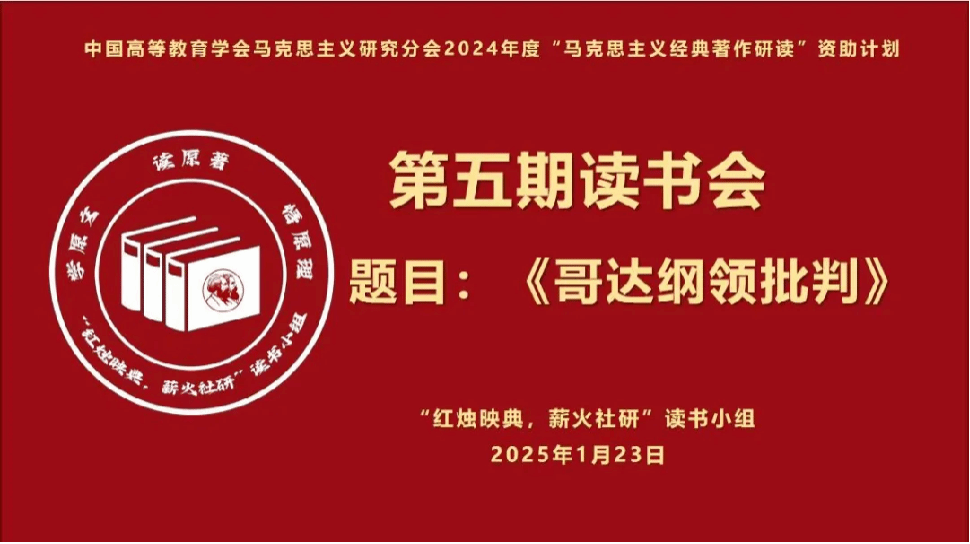 2025年1月23日下午,中国高等教育学会马克思主义研究分会2024年度“马克思主义经典著作研读”资助计划支持小组——PP电子游戏平台网站“红烛映典,薪火社研”读书小组第5期读书会于线上进行。本次读书会阅读内容为《哥达纲领批判》,指导教师成格乐图和读书小组全体成员参会,读书小组组长白少宇主持。
