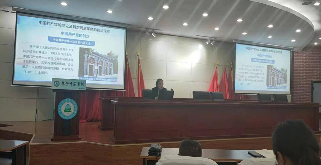 为庆祝中国共产党成立100周年,深入学习贯彻习近平新时代中国特色社会主义思想,推动党史学习教育深入开展,教育引导广大党员师生做到学史明理、学史增信、学史崇德、学史力行,做到学党史、悟思想、办实事、开新局,6月17日下午,按照学校党史学习教育领导小组以“学习讲堂”为基础的要求,马克思主义学院教师温馨、晓荣、张爱梅分别在逸夫楼多功能报告厅、校图书馆报告厅为广大师生党员做了党史专题讲座。