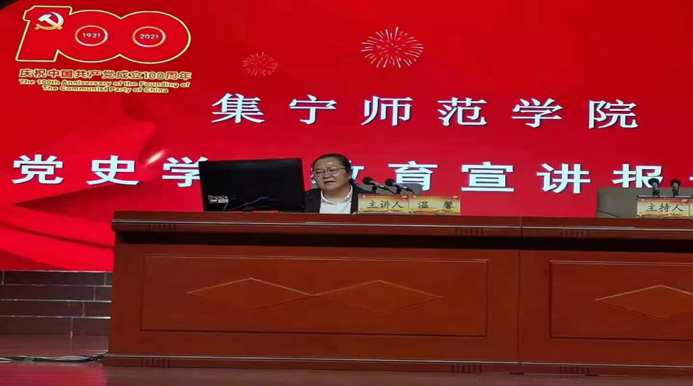 温馨为经济与管理学院、历史与文化学院、马克思主义学院、地理科学与规划学院的广大师生党员做了题为《知史爱党、知史爱国》的专题讲座,讲座共分为四部分内容:深入学习领会习近平总书记关于党的历史的重要论述,充分认识开展党史学习教育的重大意义;认真研读党史基本著作,全面了解中国共产党百年奋斗的光辉历程和历史性贡献;深刻把握开展党史学习教育的重点;开展党史学习教育,要学懂弄通做实习近平新时代中国特色社会主义思想,增强“四个意识”、坚定“四个自信”做到“两个维护”。最后,温馨总结道:“在中国共产党百年华诞的重大时刻和‘两个一百年’奋斗目标历史交汇的关键节点,全党全国各族人民要更加紧密地团结在以习近平同志为核心的党中央周围,以昂扬姿态奋力开启全面建设社会主义现代化国家新征程,以优异成绩迎接建党一百周年。”
