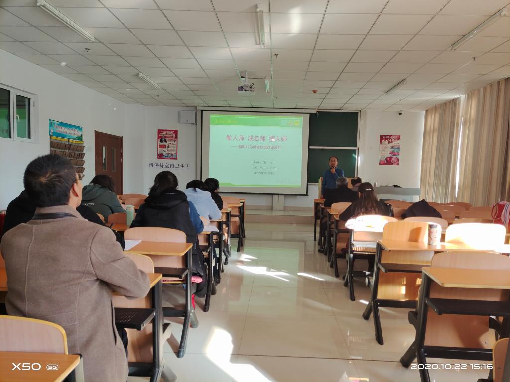 10月22日下午三点,马克思主义学院邀请曹宇教授在逸夫楼1109室以“做人师、成名师、塑大师”——新时代如何做好思政课教师为题的讲座和交流。马克思主义学院全体教师参加此次教研活动。