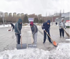 活动中,各位同学以小组为单位,每组分别有五到六人,各自分工明确,有些负责扫雪、有些负责铲雪,相互配合,他们将满腔的热情化为积极的行动,用热情“消融”冰雪,为寒冷的初春增添了一丝温暖,展现了马克思主义学院学子们的青年担当。