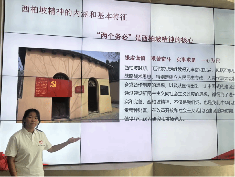 吴雨畅:在内蒙古自治区鄂尔多斯市准格尔旗沙圪堵镇西营子村,我向8位党员、6位村民代表宣讲了弘扬柏坡精神、建设美丽中国的相关内容。宣讲中,村委会成员和村民代表们积极参与、积极交流,深入了解学习了弘扬西柏坡精神的重要意义。