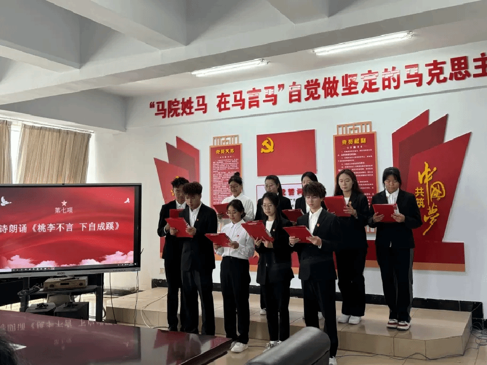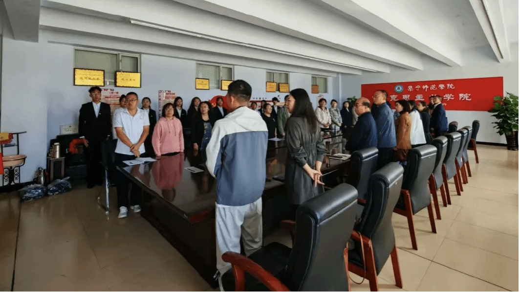 马克思主义学院师生全体起立、奏唱国歌